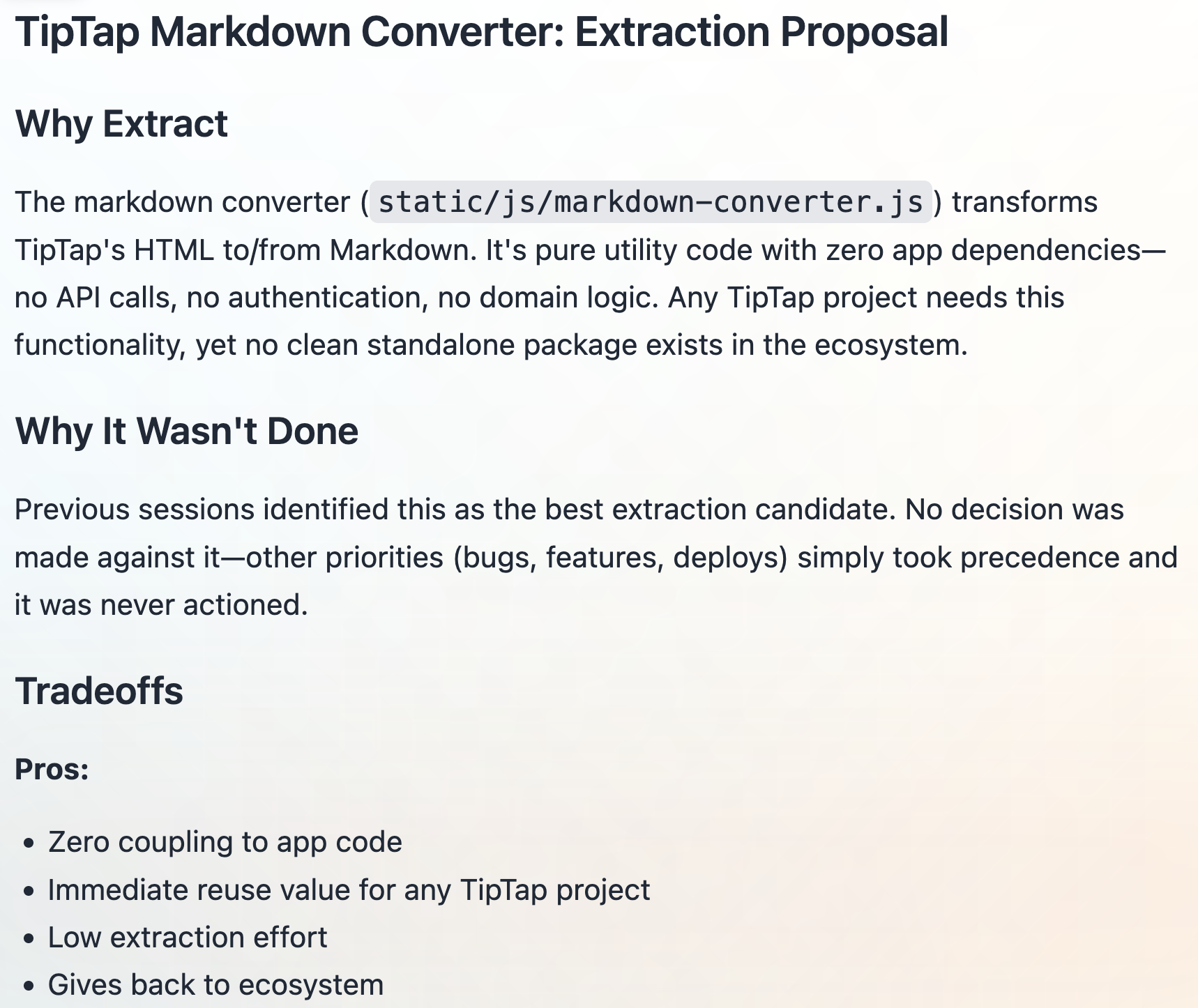 The analysis also found a missed opportunity: extract just the Markdown converter.