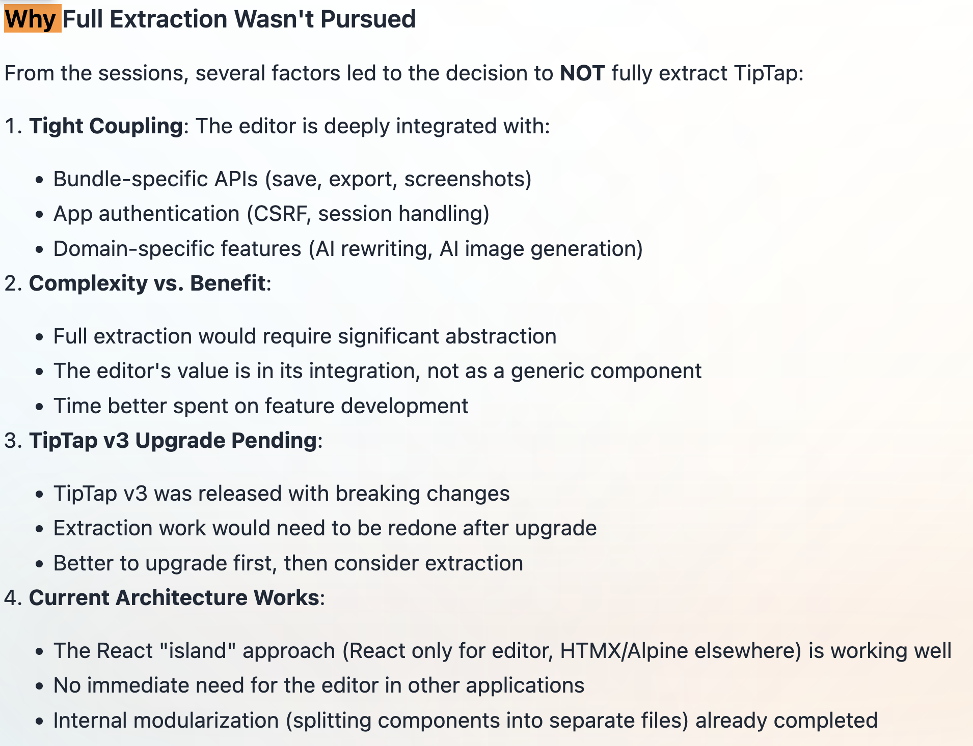 Pending Upgrade: We're waiting for TipTap V3 before refactoring.